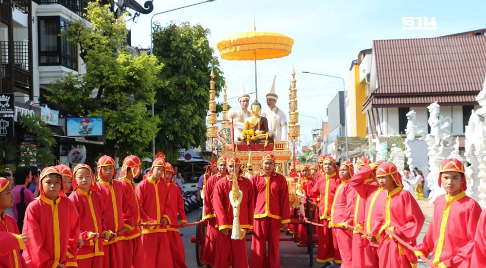 โดยในช่วงเช้าของวันนี้ นายนิรัตน์ พงษ์สิทธิถาวร ผู้ว่าราชการจังหวัดเชียงใหม่ ได้เป็นประธานประกอบพิธีอัญเชิญพระพุทธคันธาราษฎร์ หรือ พระเจ้าฝนแสนห่า พร้อมด้วยเครื่องสักการะ ขึ้นประดิษฐานบนรถบุษบก แห่ขบวนออกจากวัดช่างแต้ม ด้วยริ้วขบวนแบบล้านนาเพื่อนำมาประดิษฐานเป็นการชั่วคราว ณ วัดเจดีย์หลวงวรวิหาร เพื่อเป็นสัญลักษณ์ของการเริ่มงานประเพณีใส่ขันดอกบูชาเสาอินทขีล ประจำปี 2568