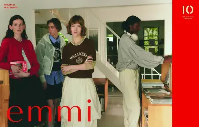 emmi (เอมมี่) ในโอกาสครบรอบ 10 ปี emmi สร้างสรรค์คอลเลกชันฤดูใบไม้ร่วง 2025 ด้วยการผสมผสานระหว่าง “Trad × Sports” โดยนำสไตล์ 'American Trad' ซึ่งเป็นแฟชั่นคลาสสิกที่ดูรีแล็กซ์จากยุค 1900s มาผสานเข้ากับแนวสปอร์ตที่มีฟังก์ชันและความคล่องตัวสูง เกิดเป็น “Sporty Trad Style” ที่เป็นเอกลักษณ์ของ emmi ดีไซน์โดดเด่นด้วยกลิ่นอายคลาสสิกที่มาพร้อมโทนสปอร์ตแบบมินิมอลที่สวมใส่ได้จริงในชีวิตประจำวัน มีการปรับสัดส่วนและดีเทลให้มีความยืดหยุ่นมากขึ้น เช่น การเพิ่มขอบยางยืดที่เอว เพื่อให้เคลื่อนไหวสะดวก แต่ยังคงความสง่างามตามแบบฉบับ 'Trad' เอาไว้ได้อย่างลงตัว