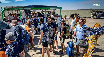 บรรยากาศการเดินทางท่องเที่ยวของจังหวัดในวันที่ 23 ธันวาคม 2566 ที่บริเวณท่าเรือแหลมศอก ต.อ่าวใหญ่ อ.เมืองจ.ตราด นักท่องเที่ยวทั้งจากต่างจังหวัดและต่างชาติเดินทางท่องเที่ยวไปยังอำเภอเกาะกูดจำนวนมาก แม้สถานการณ์คลื่นลมแรงในทะเลหมู่เกาะช้างมีความรุนแรง และสูงกว่า 2-4 เมตร