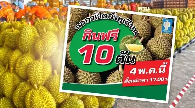 แจกทุเรียนฟรีเมืองทอง 10 ตัน วันที่ 4 พ.ค.67 นี้ รับเปิดล้งทุเรียนแห่งแรกในเมืองทองธานี กับ เทศกาลทุเรียน เมืองทองธานี เช็ครายละเอียดได้ที่นี่