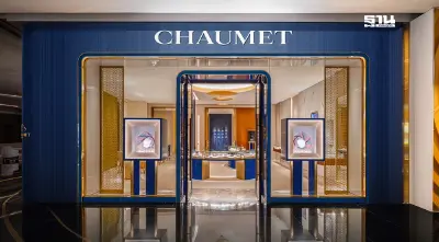 บูติกแห่งนี้ได้รับการออกแบบมาในสไตล์อพาร์ทเมนต์แห่งปารีส โดยได้รับแรงบันดาลใจมาจาก Place Vendôme ที่ตั้งอันเป็นเอกลักษณ์ของเมซง สัญลักษณ์ของ Chaumet ได้รับการถ่ายทอดด้วยความประณีต ผสานกับแสงและความโมเดิร์นในบรรยากาศอันนุ่มนวลพร้อมสีน้ำเงินอันเป็นเอกลักษณ์ของแบรนด์ตัดกับสีทองของลวดลายเชื่อมต่อซึ่งออกแบบเป็นพิเศษ ประดับประดาด้วยนิกเกิลซิลเวอร์ลงบนผนังสีน้ำเงิน พื้นผิวลายข้าวสาลีอันพริ้วไหวประดับด้วยทองคำเปลว ได้รับการรังสรรค์ขึ้นด้วยมือทั้งหมด เช่นเดียวกับผนังมงกุฎเทียร่าที่สะท้อนให้เห็นถึงกลิ่นอายของการแต่งงาน ความเชี่ยวชาญการทำเครื่องประดับสะท้อนให้เห็นถึงงานฝีมือในเชิงช่างจิวเวลรีผสมผสานเป็นส่วนหนึ่งของการตกแต่งบูติกแห่งนี้