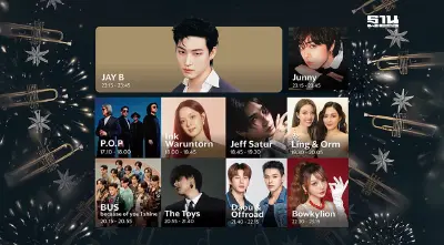 - เวลา 23.15 – 23.45 น. ส่งท้ายปี 2567 กับการแสดงสุดเอ็กซ์คลูซีพของ JAY B และ JUNNY มาในธีม Carnival of Time