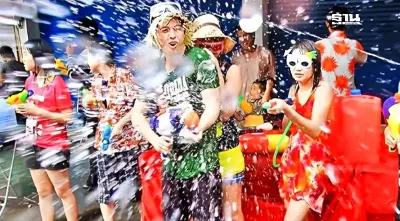 - เล่นน้ำบนถนนราชดำเนิน อุโมงค์น้ำมนต์ 9 วัด