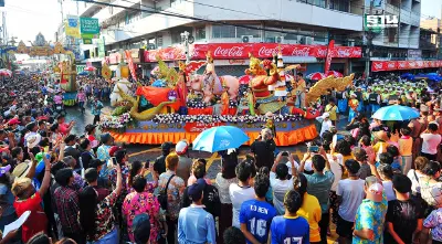 - ชมขบวนแห่นางสงกรานต์และหนุ่มลอยชายพร้อมขบวนรถบุปผชาติงดงามตระการตา