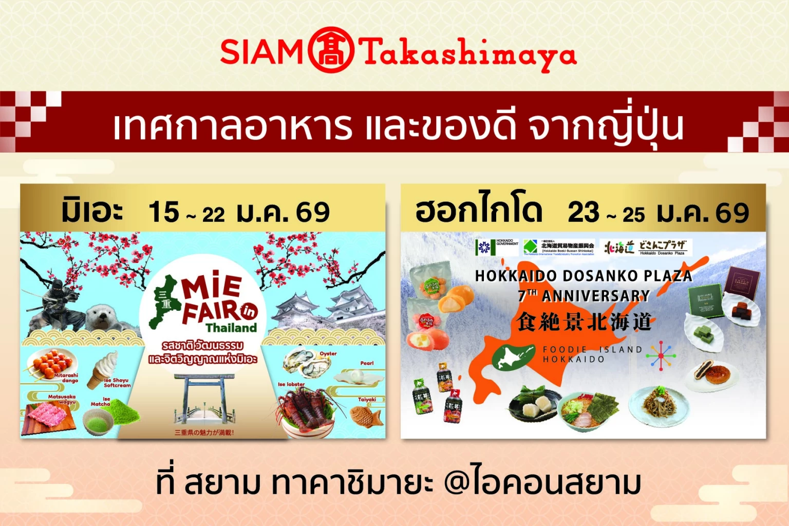 ขอเชิญชวนคนรักญี่ปุ่นและเหล่านักชิมมาร่วมสัมผัสประสบการณ์แห่งความอร่อยและวัฒนธรรมที่ส่งตรงจากแดนอาทิตย์อุทัยในงานเทศกาลอาหารสุดพิเศษนี้ ณ ชั้น G ห้างสรรพสินค้าสยาม ทาคาชิมายะ ณ ไอคอนสยาม ที่จะทำให้คุณรู้สึกเหมือนได้เดินอยู่ท่ามกลางย่านของกินในญี่ปุ่นจริงๆ ตลอดเดือนมกราคม 2569 นี้ สอบถามรายละเอียดเพิ่มเติม โทร. 02-011-7500 หรือ Facebook: Siam Takashimaya