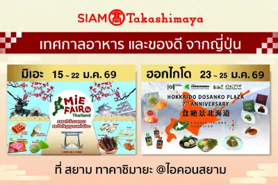 - สยาม ทาคาชิมายะ ณ ไอคอนสยาม จัด 2 เทศกาลอาหารญี่ปุ่นยิ่งใหญ่ตลอดเดือนมกราคม โดยนำเสนอวัตถุดิบและเมนูเด่นจากจังหวัดมิเอะและภูมิภาคฮอกไกโด