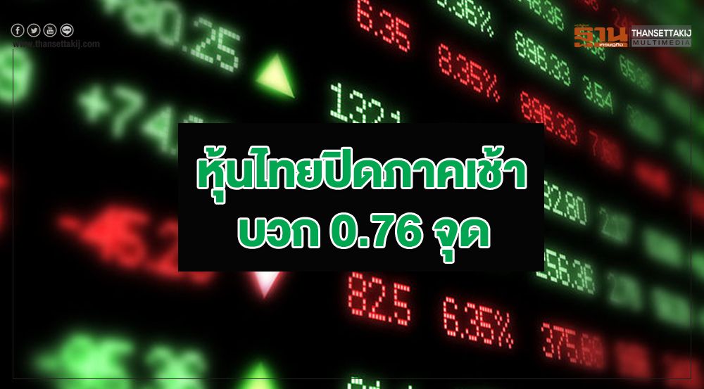 ตลาดหุ้นไทยปิดการซื้อขายภาคเช้าวันที่ 24 มิถุนายน 2562 บวก 0.76 จุด หรือ +0.04% ดัชนีอยู่ที่ 1,717.90 จุด มูลค่าซื้อขาย 28,991.67 ล้านบาท