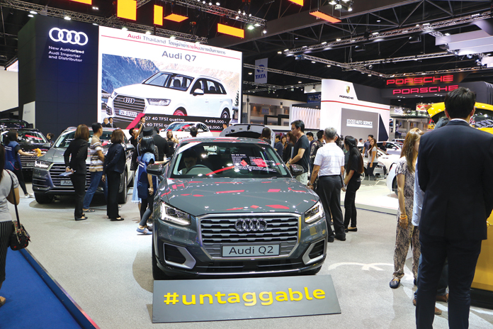 นายกฤษฎา กล่าวเพิ่มเติมว่า สำหรับยอดจองรถของออดี้ในงานมอเตอร์โชว์ที่ผ่านมา มีจำนวนทั้งสิ้น 184 คัน โดยรถที่ลูกค้าให้ความสนใจภายในงานคือ Audi TT และ Audi Q7 ที่ทำยอดจองได้เกินเป้าที่วางไว้ ส่วนรุ่นอื่นๆที่นำมาร่วมงานก็อาทิ Q2, Q3, Q5, A4, A5 Coupe’ และ A6 ขณะที่ระดับราคารถของออดี้นั้น เริ่มที่ 2 ล้านบาทไปจนถึง 18 ล้านบาท