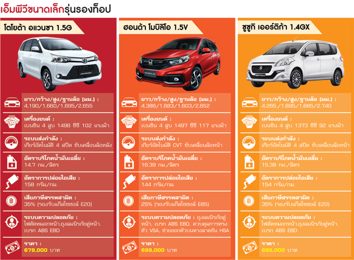 “ฐานยานยนต์” ลองนำเอ็มพีวีระดับเริ่มต้นที่ราคาเข้าถึงได้มาพิจารณาแต่เลือกเป็นรุ่นเกียร์อัตโนมัติ เบาะนั่ง 3 แถว 7 ที่นั่งในรุ่นรองท็อปของ “อแวนซา”“เออร์ติก้า” และ “โมบิลิโอ”ที่เพิ่ง ไมเนอร์เชนจ์ไปสดๆร้อนมาเปรียบมวยกันว่ารุ่นไหนคุ้มค่าน่าใช้ที่สุด