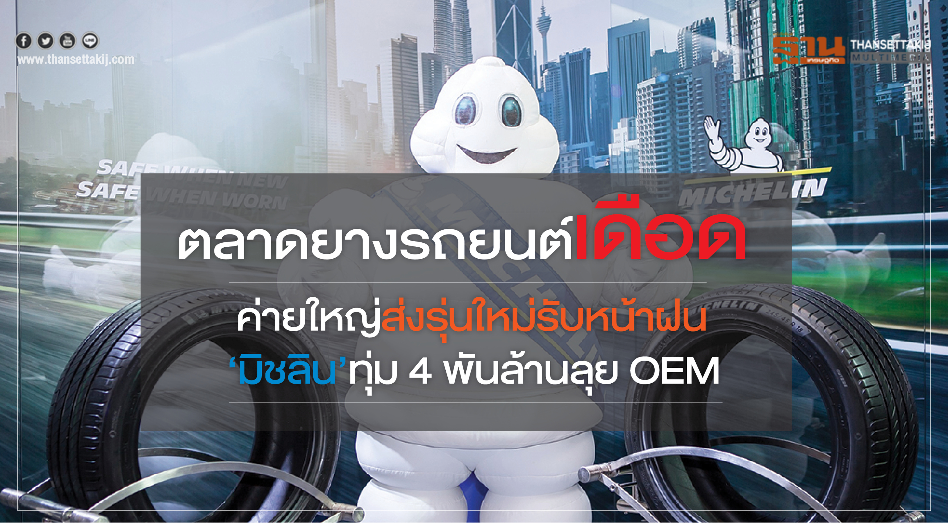 ยางรถยนต์เปิดศึกกระตุ้นยอดขายช่วงหน้าฝน “มิชลิน” ทุ่ม 4,000 ล้านพัฒนาสินค้าใหม่ พร้อมป้อนโรงงานผลิตรถยนต์ OEM ด้าน “บริดจสโตน” เล็งส่งยางสปอร์ตรุ่นท็อป ลงตลาดปลายไตรมาส 3 ขณะที่ “กู๊ดเยียร์” อัดโปรโมชันผ่อนชำระ 6 เดือนดอกเบี้ย 0%