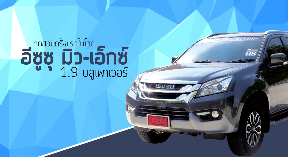 อีซูซุ มิว- เอ็กซ์ 1.9 บลูเพาเวอร์ ได้รับการตอบรับอย่างดีมาก จนส่งมอบให้ลูกค้าไม่ทันกับความต้องการ กว่าที่ผมจะมีโอกาสได้ทดสอบ ก็ต้องรอนานหลายเดือน เมื่อทางบริษัท ตรีเพชร อีซูซุ เซลส์ จำกัด ผู้จัดจำหน่ายรถยนต์อีซูซุชวนผมไปขับรถท่องเที่ยวด้วยรถรุ่นนี้ ก็เลยถือโอกาสทดสอบรถไปเลย ซึ่งน่าจะเป็นการทดสอบครั้งแรกของโลก เพราะหลายๆประเทศยังไม่มีการเปิดตัวอย่างเป็นทางการเลยด้วยซ้ำ
