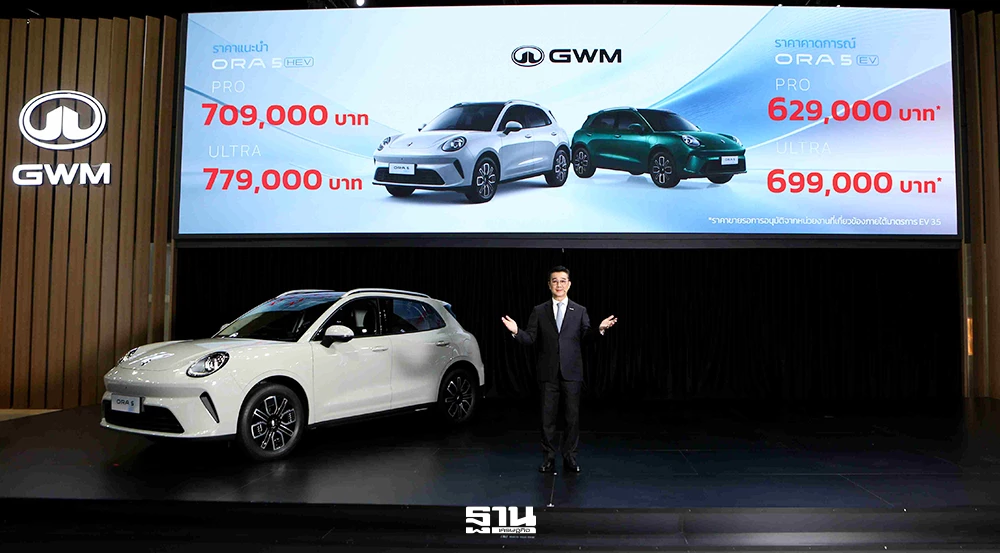 GWM ลุยมอเตอร์โชว์ 2026 พร้อมเปิดราคา GWM ORA 5 ช่วงแนะนำ รุ่น HEV เริ่ม 709,000-779,000 บาท ส่วน EV เริ่ม 629,000-699,000 บาท