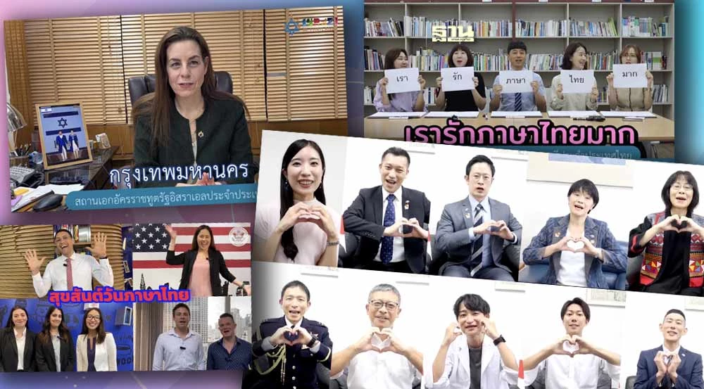 และเนื่องวันภาษาไทยแห่งชาติ 2566 ปีนี้ วธ. ได้รับความร่วมมือจากทางสถานเอกอัครราชทูตต่างประเทศประจำประเทศไทย จัดทำวีดิทัศน์ส่งเสริมการใช้ภาษาไทยด้วย โดยปีนี้เป็นที่น่ายินดีว่ามีสถานเอกอัครราชทูตที่เข้าร่วมกิจกรรม 19 ประเทศ ประกอบด้วย