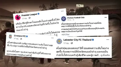 เลสเตอร์ ซิตี้ “สโมสรฟุตบอลเลสเตอร์ ซิตี้ ขอแสดงความเสียใจอย่างสุดซึ้งกับเหตุการณ์ที่จังหวัดหนองบัวลำภู และขอเป็นกำลังใจให้ครอบครัวผู้เสียชีวิตและผู้บาดเจ็บมา ณ โอกาสนี้