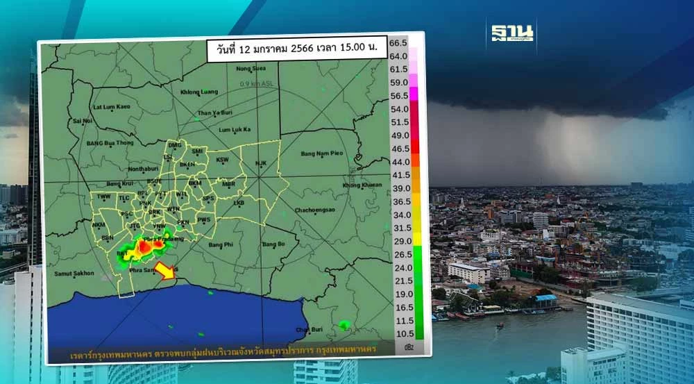 วันที่ 12 ม.ค.66 กรมอุตุนิยมวิทยา รายงานและพยากรณ์ฝนบริเวณกรุงเทพมหานครและปริมณฑล ผลการตรวจฝนด้วยเรดาร์