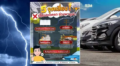 5 จุดเสี่ยง! เลี่ยงจอดรถ ช่วงพายุเข้า ฝนฟ้าคะนอง
