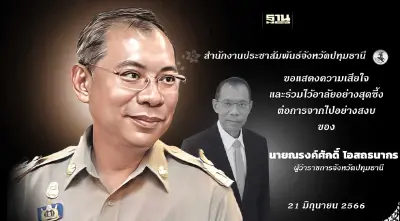 ปทุมธานี โพสต์อาลัย ผู้ว่าหมูป่า ยกเป็นพ่อเมืองตัวอย่าง