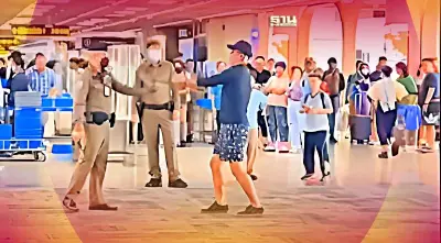 นักท่องเที่ยวจีนป่วนสนามบินดอนเมือง อาละวาดคว้าสเกตบอร์ดฟาดตำรวจ (คลิป)