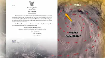 ประกาศกรมอุตุนิยมวิทยา เรื่อง พายุ "โคอินุ" ฉบับที่ 1 ล่าสุดได้เคลื่อนลงสู่ทะเลจีนใต้ตอนบนแล้ว เผย พายุ ลูกดังกล่าวนี้ไม่ส่งผลกระทบโดยตรงต่อลักษณะอากาศของประเทศไทย