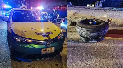ล้อรถไฟฟ้าสายสีเหลืองหลุด หล่นใส่รถแท็กซี่ เคราะห์ดีไม่มีผู้ได้รับบาดเจ็บ