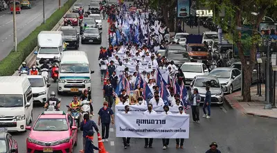 - เวลา 12.30-13.30 น. จัดรูปแบบขบวนหน้า กระทรวงการอุดมศึกษา วิทยาศาสตร์ วิจัยและนวัตกรรม พร้อมรับอาหารว่าง และน้ำดื่ม รับฟังอภิปราย ปราศรัย