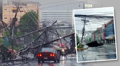 หาดใหญ่ฝนตกหนัก เสาไฟฟ้าล้ม แนะเลี่ยงเส้นทางถนน30เมตร