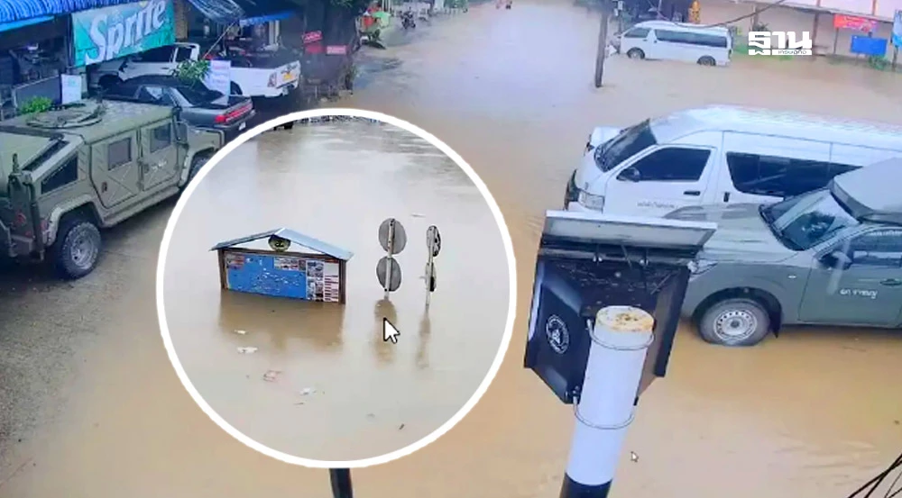 2.ทางหลวงหมายเลข 3158 แสนตุ้ง - หนองบัว ช่วง กม.29+600 – 30+400 ในพื้นที่อำเภอเขาสมิง จังหวัดตราด ระดับน้ำสูง 100 ซม. ทำให้การจราจรผ่านไม่ได้