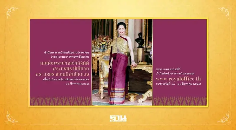 ขณะที่ สำนักพระราชวัง ขอเชิญชวนประชาชนร่วมลงนามถวายพระพรชัยมงคล สมเด็จพระนางเจ้าสิริกิติ์ พระบรมราชินีนาถ พระบรมราชชนนีพันปีหลวง เนื่องในโอกาสวันเฉลิมพระชนมพรรษา วันที่ 12 สิงหาคม 2567 ผ่านระบบออนไลน์ ที่เว็บไซต์หน่วยราชการในพระองค์ www.royaloffice.th ระหว่างวันที่ 11 – 13 สิงหาคม 2567