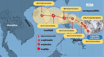 เส้นทางพายุโซนร้อนจ่ามี คาดเคลื่อนตัวลงทะเลจีนใต้ 23-24 ต.ค.67