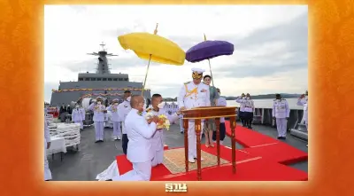 วันนี้ (18 พฤษภาคม 2567) เวลา 17.11 น. พระบาทสมเด็จพระเจ้าอยู่หัว และสมเด็จพระนางเจ้า ฯ พระบรมราชินี เสด็จพระราชดำเนินไปทรงประกอบพิธีเจิมเรือหลวงช้าง ณ ท่าเรือจุกเสม็ด ฐานทัพเรือสัตหีบ อำเภอสัตหีบ จังหวัดชลบุรี โดยมี พลเรือเอก อะดุง พันธุ์เอี่ยม ผู้บัญชาการทหารเรือ พลเรือเอก ชาติชาย ทองสะอาด ผู้บัญชาการกองเรือยุทธการ หัวหน้าส่วนราชการ และประชาชน เฝ้า ฯ รับเสด็จ
