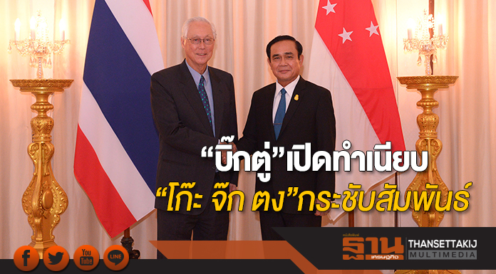 “โก๊ะ จ๊ก ตง”เข้าทำเนียบพบนายกฯประยุทธ์ ผู้นำสองฝ่ายพอใจความสัมพันธ์ทวิภาคีแน่นแฟ้นทุกมิติ ชี้นโยบายSmart Nation ของสิงคโปร์คล้ายคลึงThailand4.0 มุ่งใช้ไอทีสร้างนวัตกรรม