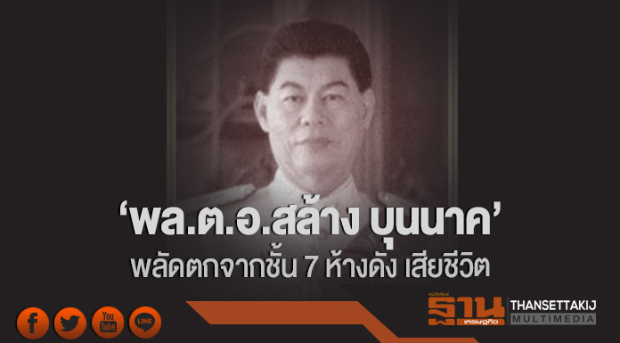 พล.ต.อ.สล้าง บุนนาค อดีตรองอธิบดีกรมตำรวจ พลัดตกจากชั้น 7 ของห้างดังย่านแจ้งวัฒนะ เสียชีวิต