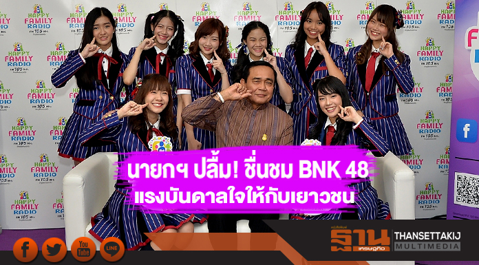 นายกฯ พบ BNK 48 ชื่นชม เป็นแรงบันดาลใจให้กับเยาวชน พร้อมร่วมเต้นคุกกี้เสี่ยงทาย ขณะที่ BNK48 ให้กำลังใจนายกฯ ระบุ ทำงานหนัก เชื่อว่า เป็นสิ่งที่ดี และจะเกิดความเปลี่ยนแปลง