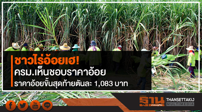 ครม.เห็นชอบราคาอ้อยขั้นสุดท้ายฤดูการผลิต 59/60 ตันละ 1,083 บาท พร้อมขยายเวลาส่งเสริมบุคคลธรรมดาประกอบธุรกิจ