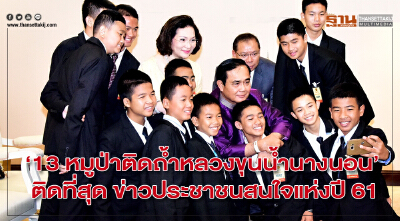 “13 หมูป่าติดถ้ำหลวงขุนน้ำนางนอน” ติดที่สุดข่าวประชาชนสนใจแห่งปี 2561”