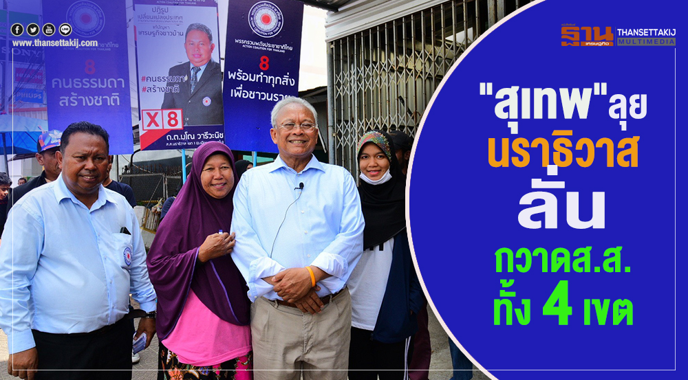 'สุเทพ' ลุยช่วยลูกพรรคหาเสียงแดนใต้ ลั่น! มั่นใจ 'นราธิวาส' ได้ ส.ส. หมดทั้ง 4 เขต
