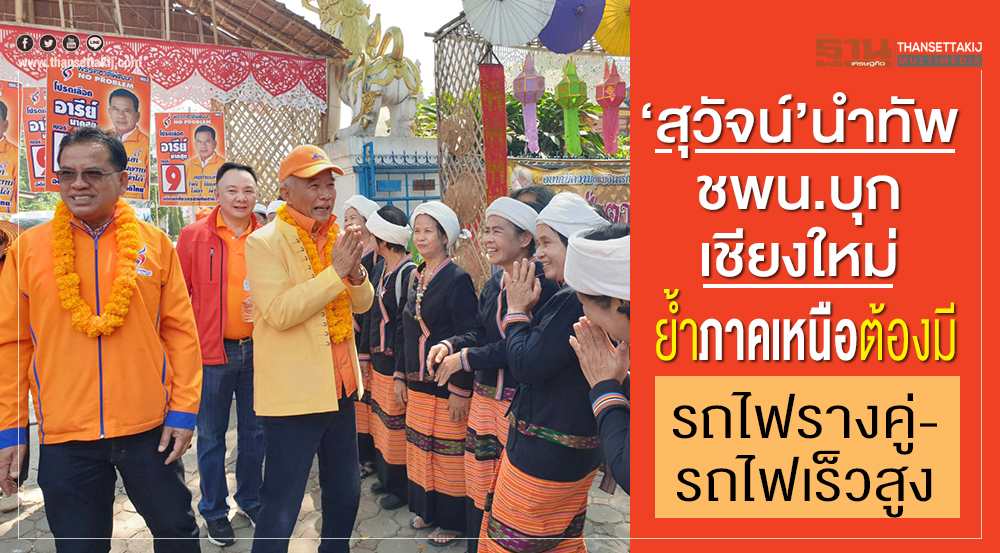 "สุวัจน์" นำทัพชาติพัฒนา บุกเชียงใหม่เมืองหลวงเพื่อไทย ชูนโยบายภาคเหนือมุ่งพัฒนาอุตสาหกรรมเกษตรดันภาคเหนือเป็นครัวโลก บูมท่องเที่ยว ให้เป็นรายได้หลักส่งเสริมสินค้าพื้นเมือง -โอทอป แหล่งท่องเที่ยว ประเพณีวัฒนธรรมจุดแข็งประเทศไทย ย้ำชู "เชียงใหม่" ฮับจัดอีเว้นธ์ระดับโลก ย้ำต้องสร้างรถไฟรางคู่ - รถไฟเร็วสูง ทั่วภาคเหนือ อ้อน คนเหนือ ชาติพัฒนา ขอเป็นทางเลือก เผย ไม่กดดันแข่ง พท. บอลรองเล่นสบาย เน้นนโยบายดีแก้เศรษฐกิจรากหญ้า