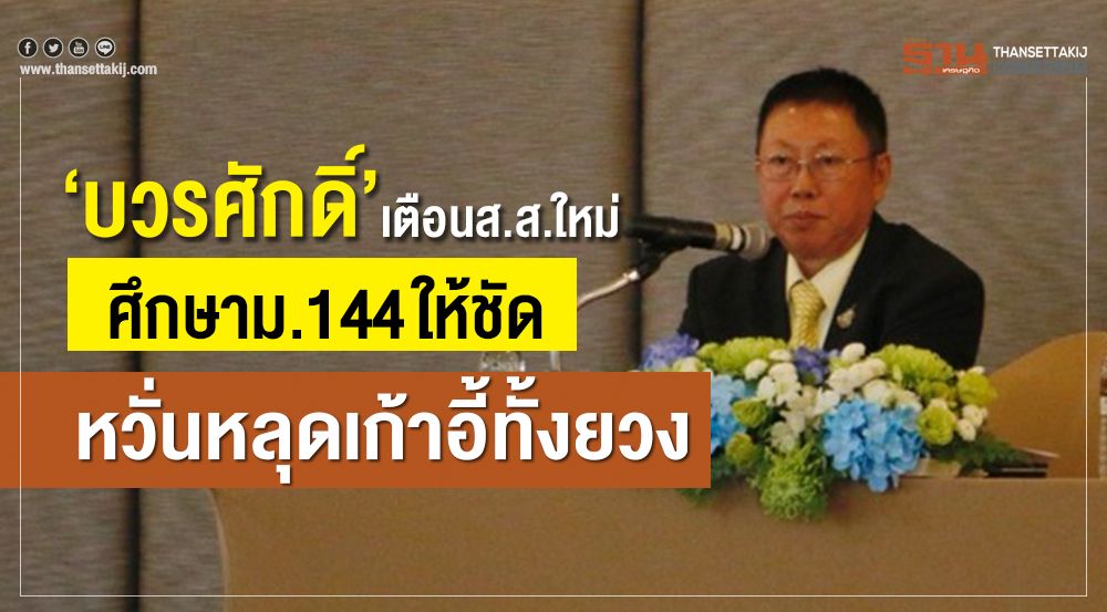 “บวรศักดิ์ อุวรรณโณ” ยินดี ส.ส.ใหม่พลังประชารัฐ พร้อมยก 3 เหตุผลหลักบทบาทหน้าที่ ส.ส.ตาม รธน.60 เตือนให้ศึกษา มาตรา 144 ให้ชัดเจน หากทำไม่รอบคอบ ครม.อาจต้องพ้นจากตำแหน่งทั้งคณะ