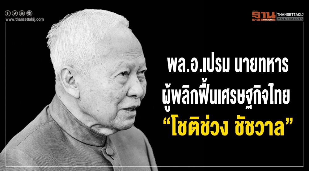 พล.อ.เปรม ติณสูลานนท์ ประธานองคมนตรี และรัฐบุรุษ นอกจากจะได้ดำรงตำแหน่งสูงสุดในทางทหารโดยเป็นผู้บัญชาการทหารบก ที่มีผลงานโดดเด่นในการสู้รบ และปกป้องประเทศชาติจากภัยคุกคามความมั่นคงของประเทศของประเทศแล้ว ในช่วง 8 ปีที่ดำรงตำแหน่งนายกรัฐมนตรี ยังเข้ามาแก้ปัญหาเศรษฐกิจของประเทศ ให้รอดพ้นจากภาวะล้มละลาย จากวิกฤติการณ์ทางเศรษฐกิจ และนำมาเศรษฐกิจของไทยไปสู่ยุค “โชติช่วง ชัชวาล”