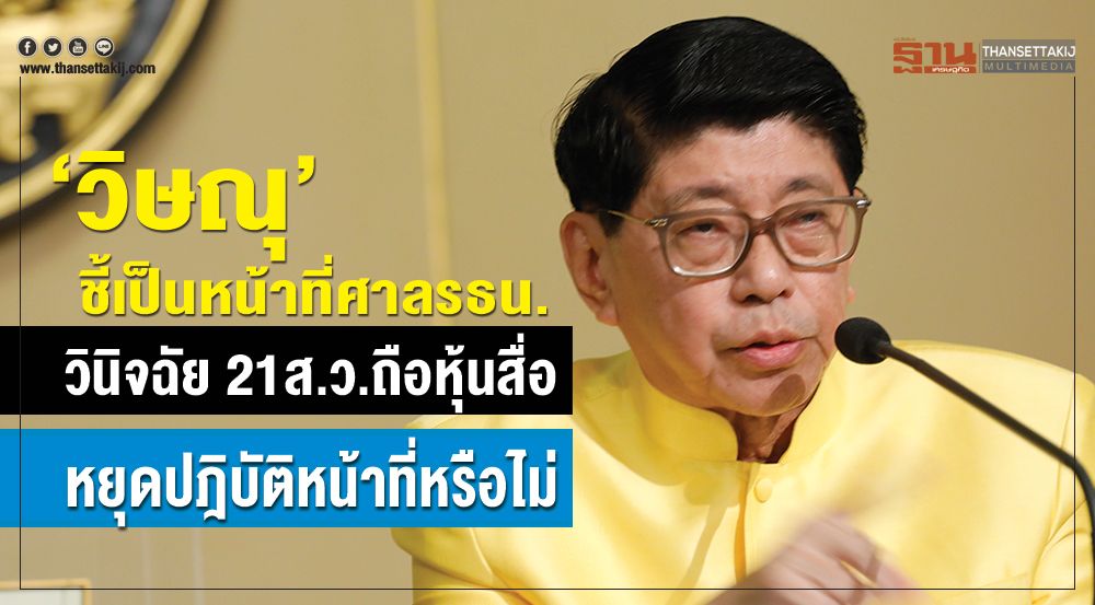 “วิษณุ” ระบุเป็นหน้าที่ของศาลรัฐธรรมนูญที่จะวินิฉัยกรณี 21 ส.ว.ถือหุ้นสื่อว่าควรหยุดปฏิบัติหน้าที่หรือไม่ ต้องไปดูในรายละเอียดเชิงลึก ชี้ไม่กระทบองค์ประชุมสภา เพราะมีเสียงเกินกึ่งหนึ่ง