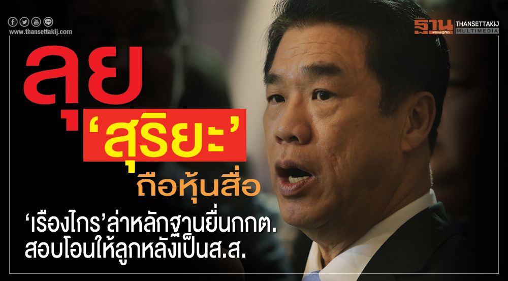 นายเรืองไกร ลีกิจวัฒนะ อดีตสมาชิกพรรคไทยรักษาชาติ เปิดเผยกับ “ฐานเศรษฐกิจ” ว่า ขณะนี้กำลังตรวจสอบเอกสารทั้งหมด ที่กรมพัฒนาธุรกิจการค้า กระทรวงพาณิชย์ ว่านายสุริยะ จึงรุ่งเรืองกิจ รมว.อุตสาหกรรม และส.ส.บัญชีรายชื่อ พรรคพลังประชารัฐ (พปชร.) เข้าหลักเกณฑ์การถือครองหุ้นสื่อหรือไม่ หากนาย สุริยะ โอนหุ้นบริษัท ซัมมิท อีเล็คโทรนิค คอมโพเน้นท์ จำกัด ไปให้นายศาตนันท์ จึงรุ่งเรืองกิจ บุตรชาย เมื่อวันที่ 28 มิถุนายน 2562 แต่นายสุริยะเป็นส.ส.วันที่ 30 เมษายน 2562 โดยนายสุริยะถือครอง 70,400 หุ้นจากทั้งหมด 1,500,000 หุ้นมูลค่าหุ้นละ 100 บาท