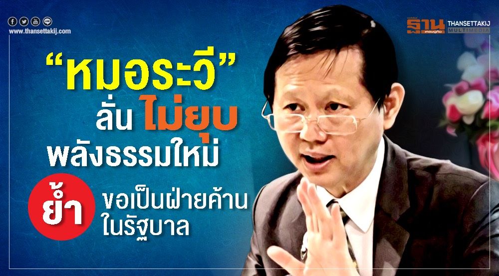 "หมอระวี”ยันไม่คิดยุบพลังธรรมใหม่ ย้ำจุดยืนเป็น “ฝ่ายค้านในรัฐบาล” ถ้าทำดี พร้อมส่งเสริม แต่ถ้าผิดไม่เอาด้วย มั่นใจพรรคเศรษฐกิจใหม่อยู่ฝ่ายไหนก็ทำงานได้