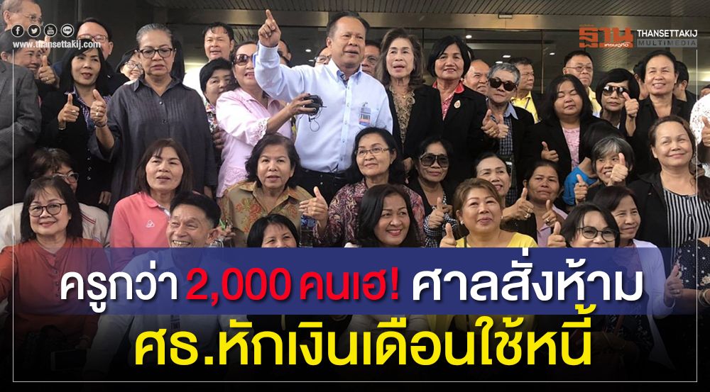 ครูลูกหนี้2,919 คนทั่วประเทศเฮ! ชนะคดีที่ยื่นฟ้อง รมว.ศธ.-ผู้บริหารศธ.ทุกระดับ รวม 6 ราย ชี้ละเลยระเบียบ กระทรวงศึกษาฯ เรื่องการหักเงินเดือนครูไปใช้หนี้ที่ต้องเหลือ 30% ของเงินเดือนไว้ยังชีพ ด้านตัวแทนครู ยันใช้หนี้ทุกบาททุกสตางค์