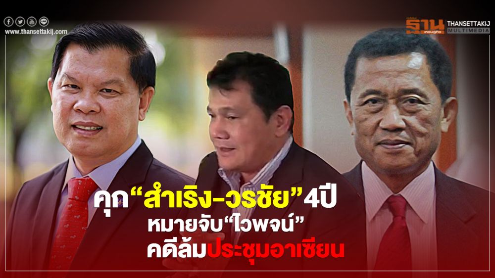 ศาลพัทยาอ่านคำสั่งศาลฎีกา สั่งจำคุก “สำเริง ประจำเรือ-วรชัย เหมะ” คนละ 4 ปี คดีล้มประชุมอาเซียน ออกหมายจับ “ไวพจน์” มาฟังคำสั่ง 13 ม.ค.ปีหน้า ส่วนที่แก้คำให้การเป็นรับสารภาพ ศาลยกคำร้อง