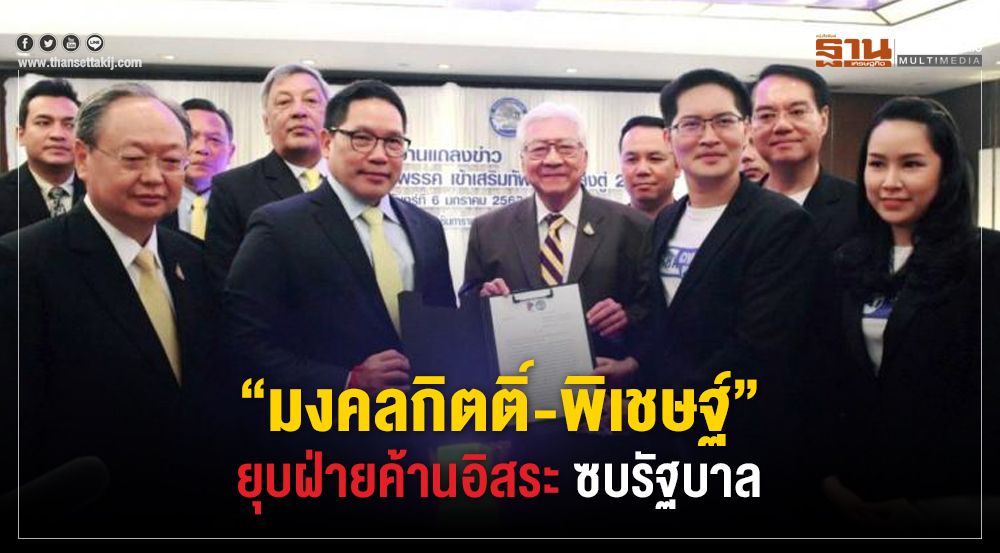 วันที่ 6 ม.ค.63 ที่โรงแรมเซ็นทารา แกรนด์ แอท เซ็นทรัลลาดพร้าว นายมงคลกิตติ์ สุขสินธารานนท์ หัวหน้าพรรคไทยศรีวิไลย์ และนายพิเชษฐ์ สถิรชวาล หัวหน้าพรรคประชาธรรมไทย แถลงยุบฝ่ายค้านอิสระ เพื่อสนับสนุนรัฐบาลพล.อ.ประยุทธ์ จันทร์โอชา นายกรัฐมนตรี โดยมีนายอุตตม สาวนายน รัฐมนตรีว่าการกระทรวงการคลัง และหัวหน้าพรรคพลังประชารัฐ นายสนธิรัตน์ สนธิจิรวงศ์ รัฐมนตรีว่าการกระทรวงพลังงาน และเลขาธิการพรรคพลังประชารัฐ รับมอบหนังสือแสดงเจตจำนงค์ร่วมรัฐบาลอย่างเป็นทางการ