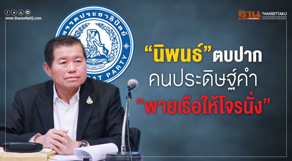 วันที่ 10 มี.ค. 63 ที่ทำเนียบรัฐบาล นายนิพนธ์ บุญญามณี รมช.มหาดไทย และแกนนำพรรคประชาธิปัตย์ (ปชป.) ให้สัมภาษณ์ถึงกรณีแชทไลน์ของพรรค ปชป.ที่ถูกเผยแพร่ออกมา ซึ่งสมาชิกบางคนต้องการให้พรรคถอนตัวจากการเป็นพรรคร่วมรัฐบาล ว่า การที่ ปชป.มาร่วมรัฐบาลเรามาตามมติพรรค เพราะฉะนั้นการมาบอกว่าพายเรือให้โจรนั่งนั้นเป็นสิ่งที่ไม่ถูกต้อง