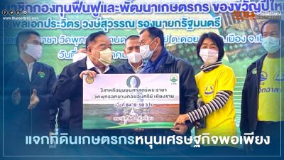 "จากการระบาดของเชื้อไวรัสโควิด-19 ซึ่งพี่น้องเกษตรกรได้รับผลกระทบเป็นจำนวนมาก บางคนตกงาน บริษัทร้านค้าปิด รัฐบาลมีนโยบายที่ต้องการให้ประชาชนมีที่ทำกิน โดยยึดหลักปรัชญาเศรษฐกิจพอเพียง สามารถพึ่งพาตนเองได้บนที่ดินของตัวเอง การช่วยเหลือจากรัฐบาล ผ่าน บจธ. ในการสนับสนุนจัดซื้อที่ดินให้แก่เกษตรกรได้เช่าและหากเกษตรกรเข้มแข็งขึ้นก็สามารถซื้อที่ดินได้”