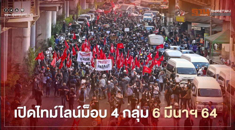 วันนี้(6 มี.ค.64) มีความเคลื่อนไหวการชุมนุมทำกิจกรรมของกลุ่มต่าง ๆ 4 กลุ่ม ทั้งกลุ่ม REDEM กลุ่มแดงก้าวหน้า 63 กลุ่มเดินทะลุฟ้า และ อาชีวะปกป้องสถาบันพระมหากษัตริย์ โดยมีความเคลื่อนไหวแต่ละช่วงเวลาที่น่าสนใจ ดังนี้