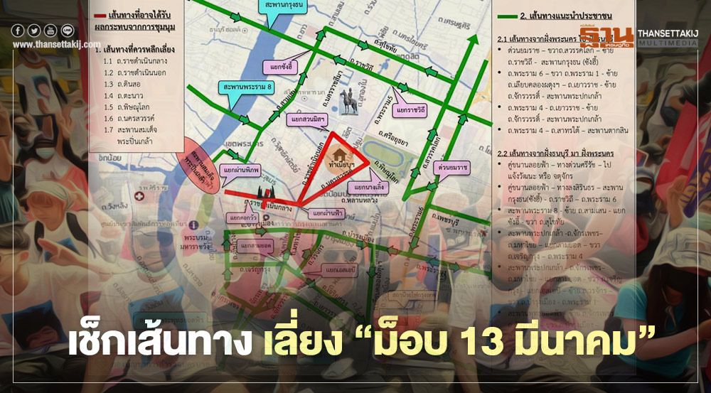 1.เส้นทางที่อาจได้รับผลกระทบจากการชุมนุมและควรหลีกเลี่ยง