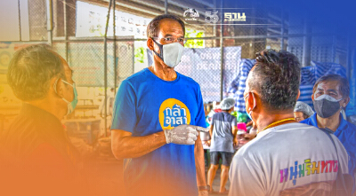 จากการลงพื้นที่ ริมทางรถไฟสายท่าเรือ เขตคลองเตย ชาวชุมชน ใช้ลานกีฬาใต้ทางด่วน ตั้งเต็นท์ล้อมสแลน ทำจุดพักคอย ชุมชน (Community Isolation) แยกผู้ติดเชื้อออกจากครอบครัว ป้องกันการระบาดในชุมชนกันเอง ด้วยความเป็นห่วง ตนพร้อมด้วยทีมงานพรรคกล้า ทั้ง ครูเป็ด มนต์ชีพ ศิวะสินางกูร กรรมการบริหารพรรค นายสมเกียรติ ปัญญะธารา ผู้กล้า - ยานนาวา รีบนำหน้ากากอนามัยโครงการ "แจกแมสก์ 5,000,000 ชิ้น" , ยาฟ้าทะลายโจร , อาหารแห้ง มาช่วยพี่ ๆ น้อง ๆ ที่กักตัวในศูนย์พักคอยที่ทำกันเอง ก่อนจะย้ายไปศูนย์พักคอยที่วัดสะพาน ซึ่งมีความเชื่อมโยงกับระบบสาธารณสุขและ กทม. เพื่อให้ผู้ที่มีอาการหนักขึ้นเข้าสู่การรักษาพยาบาลได้